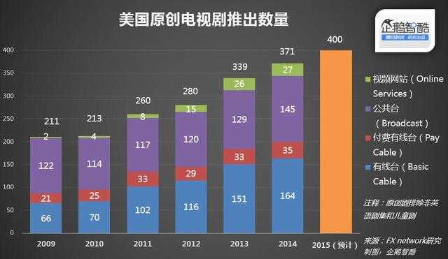 市场上每年上映的原创电视剧始终处于不断增长的趋势。据FX Network研究室的数据,2015年将会有超过400部电视剧播出。