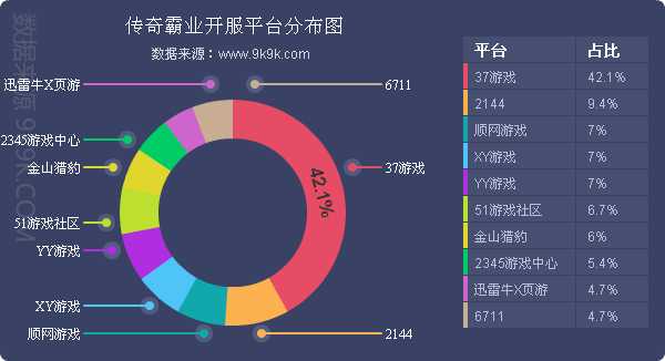 点评:本周《传奇霸业》开服稳定,在各平台开服未发生太大变化;新增占比平台6711,开服频率2服/天。