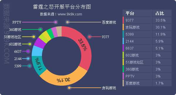 点评:本周《雷霆之怒》开服稳定,新增占比平台百度游戏。