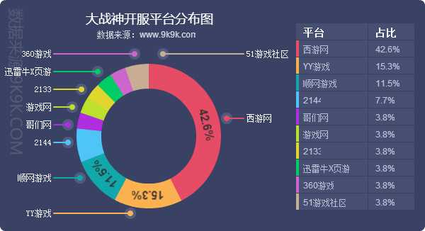 点评:本周《大战神》总体开服趋势较上周相对稳定,未有新增占比平台。