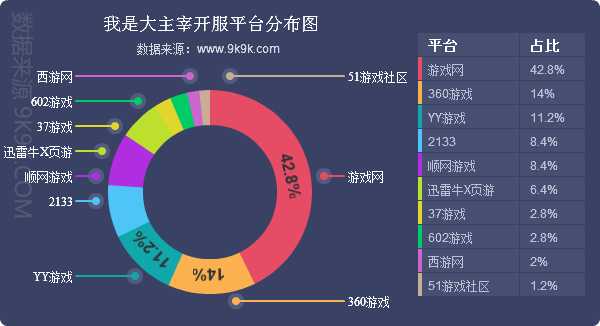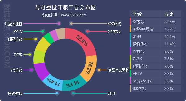 点评:《我是大主宰》本周开服增长趋势明显,在游戏网和360游戏的开服频率均较为稳定,本周占比略有减少。新增分布占比平台迅雷牛X页游、37游戏、602游戏、西游网、51游戏社区。