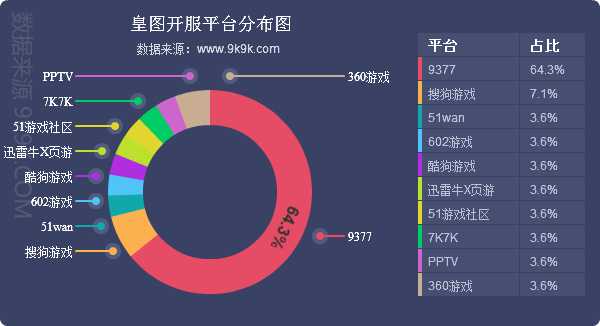 点评:本周9377独代新作《皇图》表现突出,开服总数增长趋势明显。本周新入驻5399、XY游戏、酷我游戏、妖豆游戏4家一线平台,据9K9K网页游戏开服数据统计,目前《皇图》共入驻了20家一线平台。