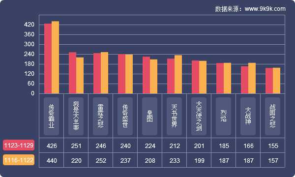 点评:本周网页游戏开服排行中,趣游旗下主推《我是大主宰》发展迅速,开服总数增长14.1%,排名上升至第二;开服前三游戏分别为《传奇霸业》、《我是大主宰》、《雷霆之怒》;本周新增上榜游戏37游戏独代的《战国之怒》。本周游戏榜单开服共2306组,占一线平台开服总数42.1%;其中开服前三游戏共开服929组,占榜单开服总数40%。