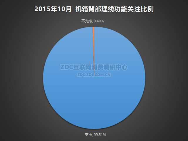 2015年10月中国的机箱市场上,支持背部理线功能的产品关注比例为99.51%,不支持的产品关注度占比为0.49%。