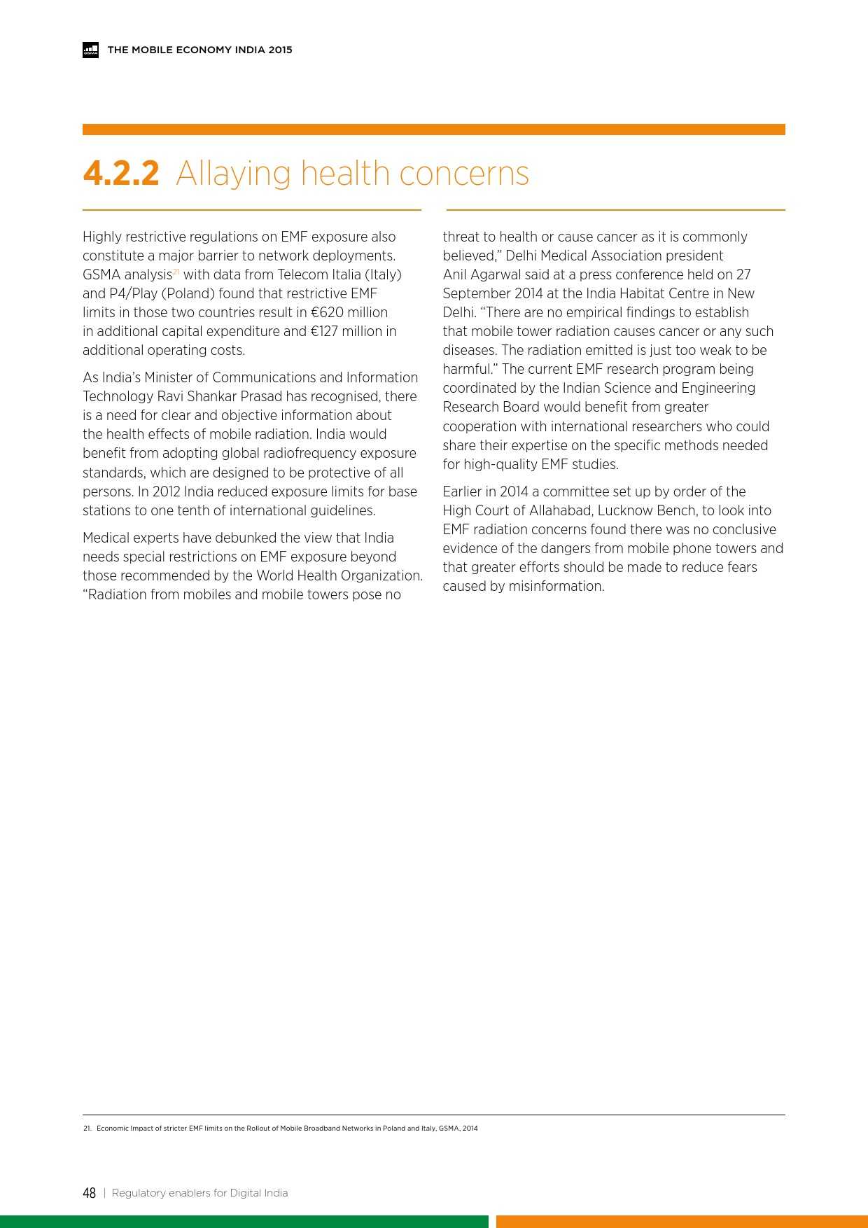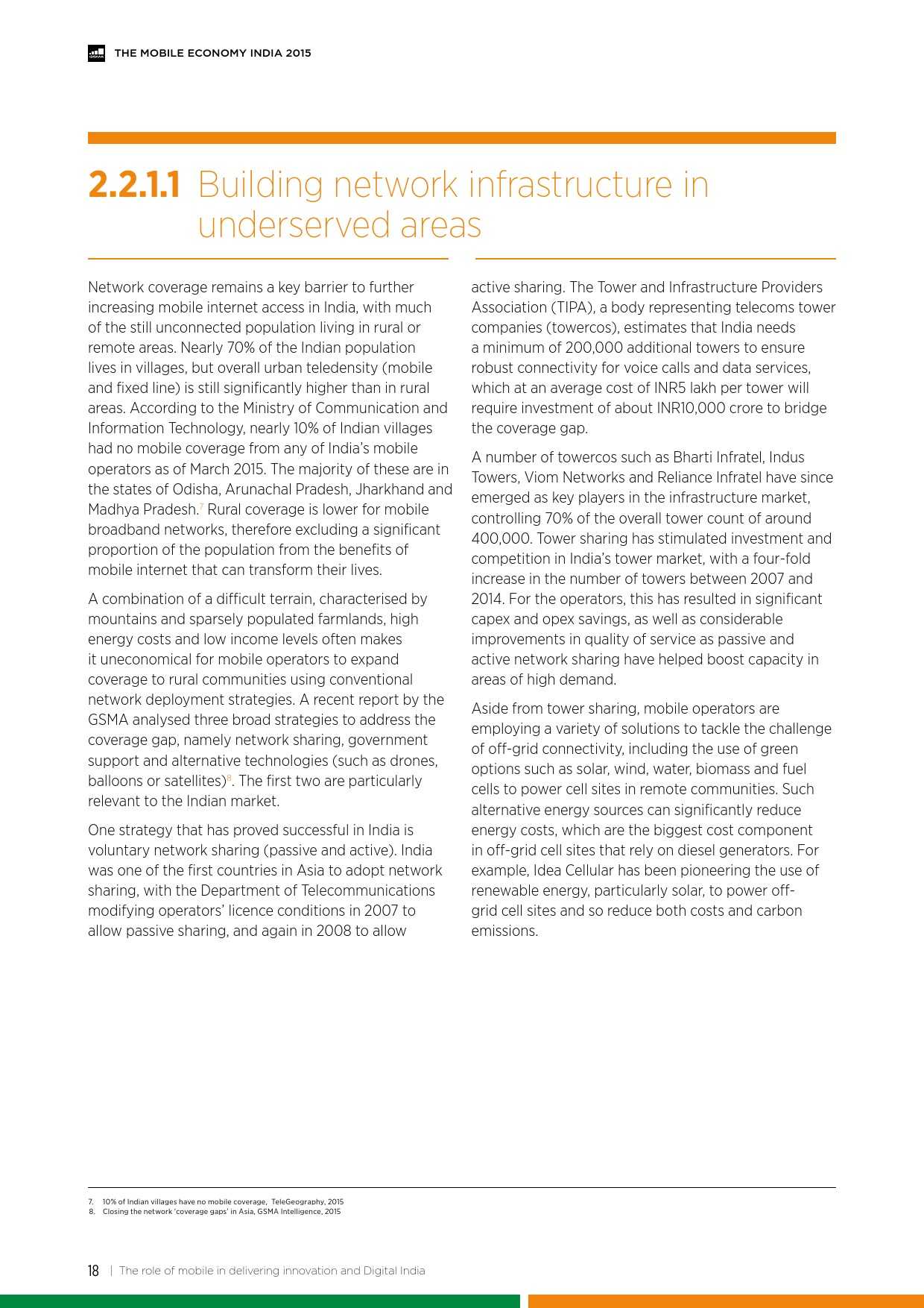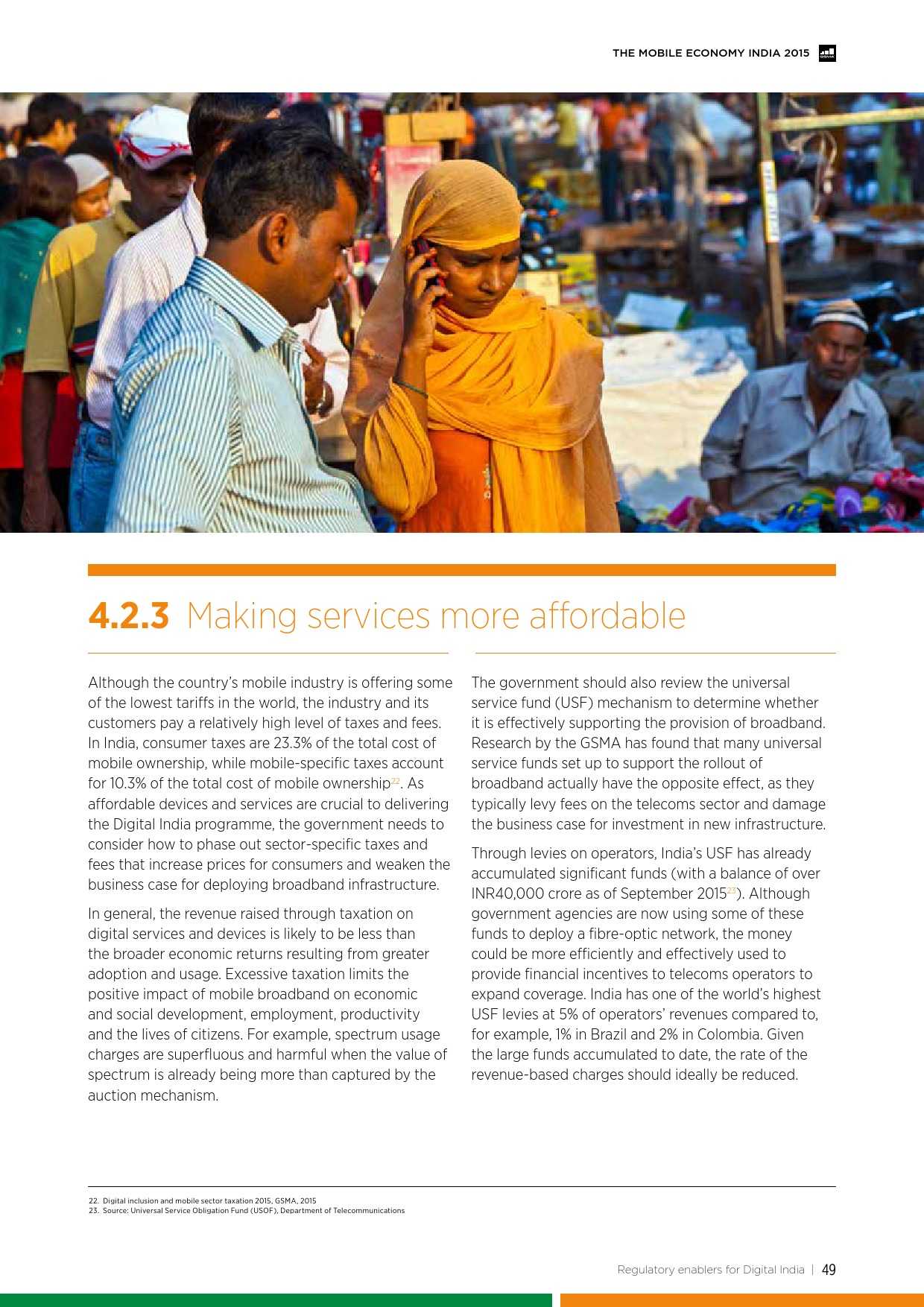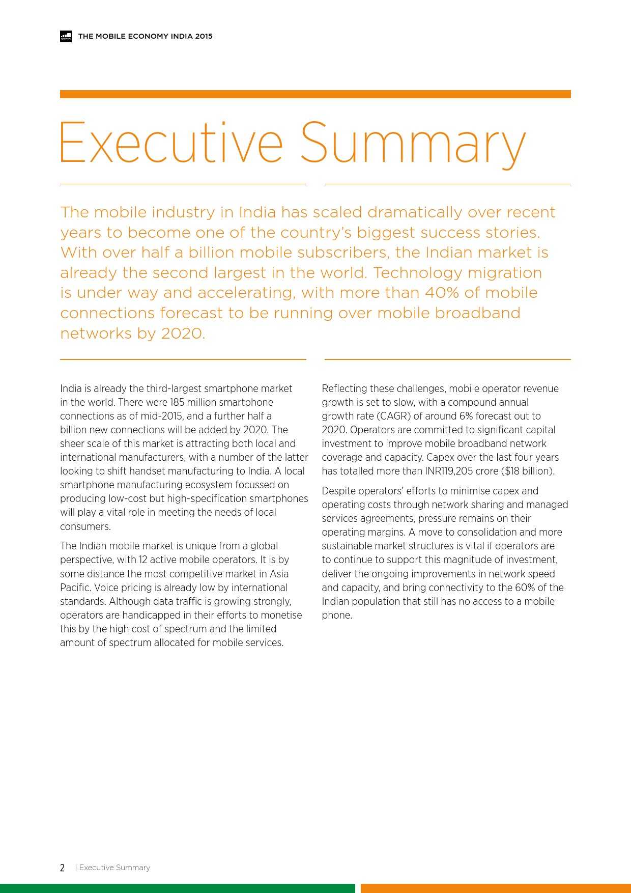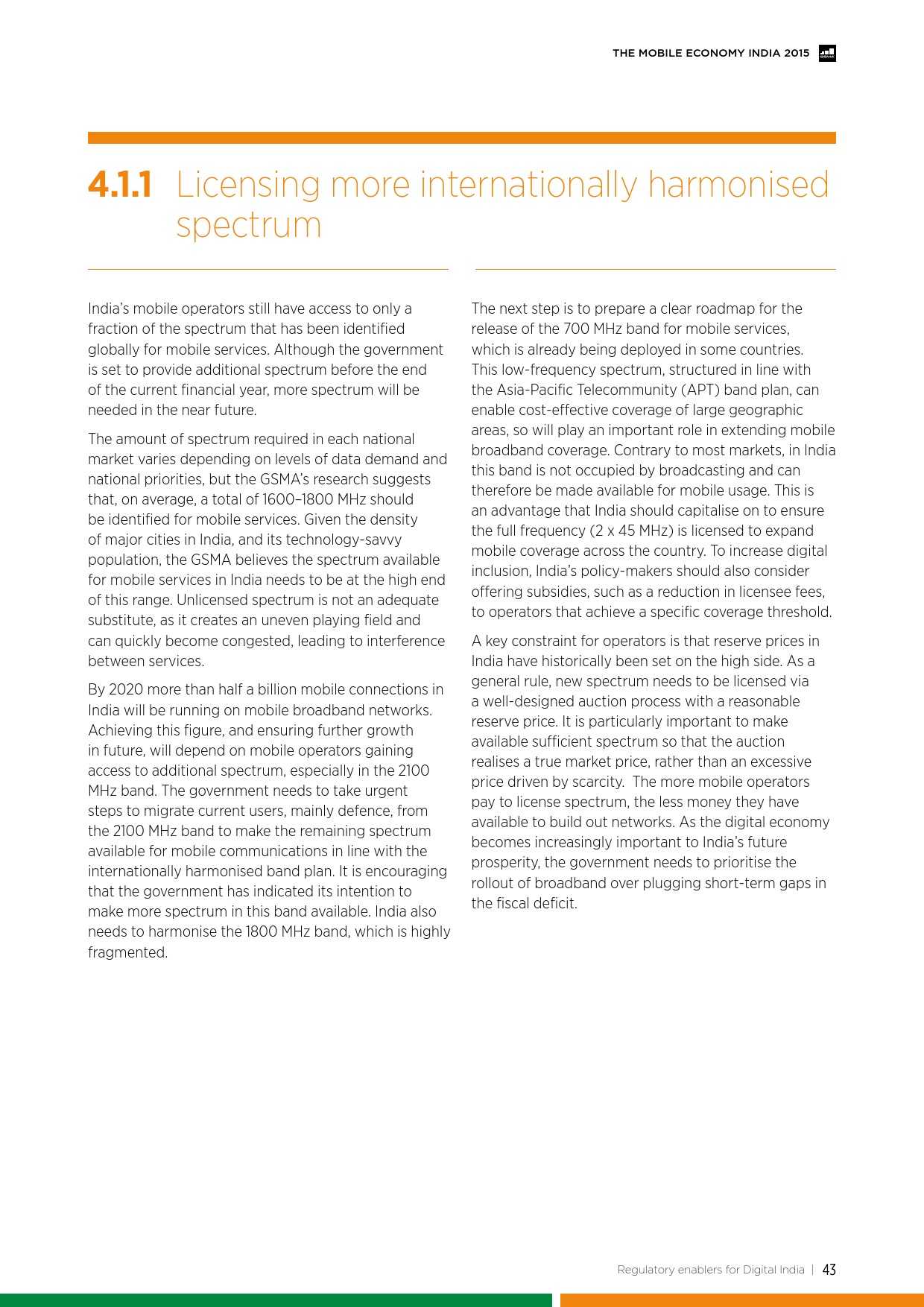印度的移动产业在2015年7月推出的“数字印度”计划中起着重要的促成作用,该计划旨在将印度转变为数字授权社会,并提供宽带连接。由于固定基础设施在该国相对缺乏,移动领域已成为其互联网接入的主导平台。通过移动设备访问互联网的个人数量已从2010年的不到1亿用户上升到2014年底的近3亿用户。