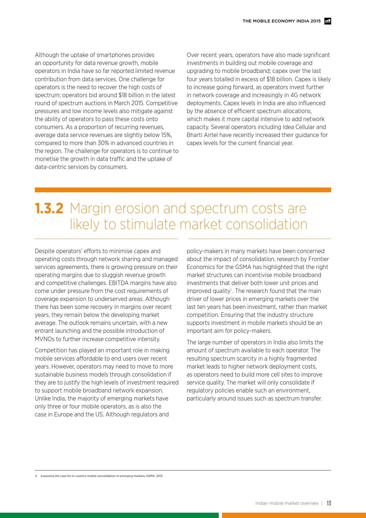 但是,由于印度的许多未连接网络的社区位于农村或偏远地区,网络覆盖和数字素养仍是进一步扩大移动互联网接入的主要障碍。该报告列举了一系列策略,以帮助弥合这一“数字鸿沟”,以及为在印度全国内部署经济实惠的移动宽带提供支持。这些策略包括以合理价格提供更多的统一频谱,以及降低针对移动的税收,从而为消费者提供更经济实惠的移动宽带,并提升移动运营商投资网络的能力。该报告还强调了调整监管框架的必要性,以反映已为传统的移动通信服务带来改变的新的市场动态。