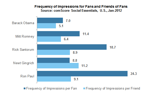 如果将Ron Paul免费获得的3000万展示用每CPM 3美元折算,相当于一个月将近10万美元的广告展示。而且好友传播的信息更具有说服力和价值。