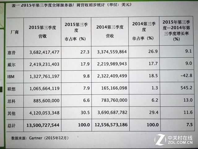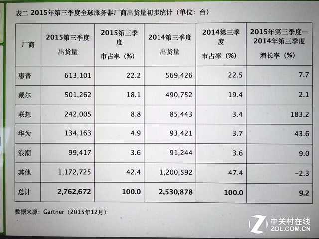 Gartner公布了2015年第三季度全球服务器的最新数据,在出货量方面,较去年同期增长9.2%,厂商收入方面则较去年同期增长7.5%。