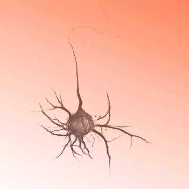 上图为一个年轻的神经元刚刚开始萌芽的过程。(Götz实验室博士研究生Nadia Cummins)