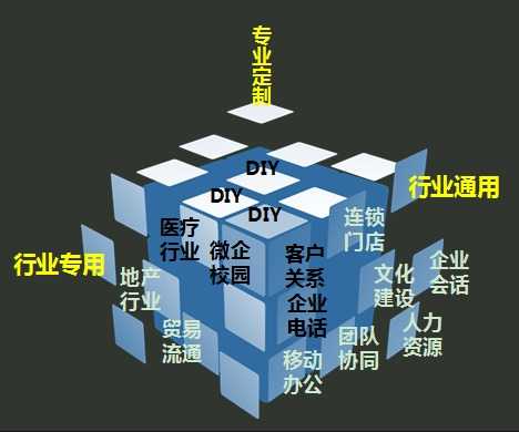 其中有一般性的,适应多个行业的通用解决方案,例如针对企业日常管理中通信、考勤、报销、日程规划等工作开发的移动办公套件;针对客户管理需求开发的包含销售追踪、拜访记录、外勤签到等功能的CRM套件等。