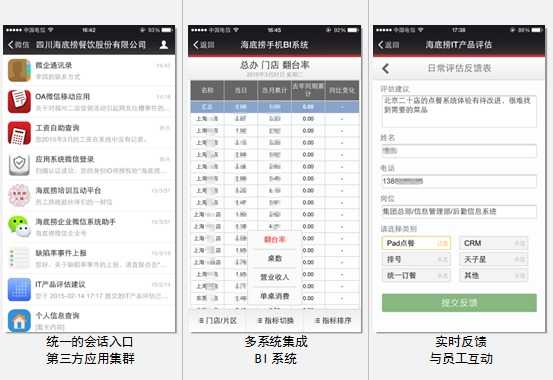 微信企业号自推出之时,就已经开始在这三个方面做文章。企业号依托微信平台,天然具备移动、实时的特点;企业号可以作为员工进入企业各个IT系统的总入口,帮助企业收集相关数据和信息;企业号可与各家主流云计算提供商进行深度整合,赋予企业IT系统几乎无限的拓展空间。