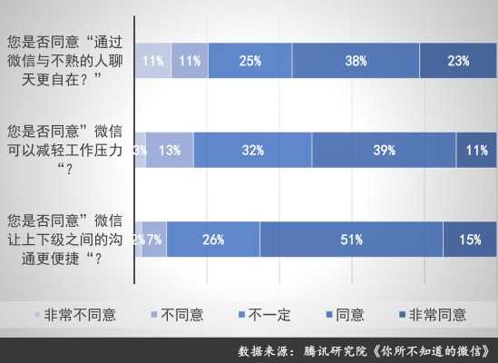 ◆与陌生人沟通更便利:调研结果还揭示微信等移动社交媒体平台对于消除陌生感、孤独感起到积极作用。与素未谋面的同事、客户、供应商一起沟通合作,是工作的常态。在这样的场景中,社交媒体对人际关系的润滑作用,可以直接提升工作效率。这样,也就不难理解为什么微信在工作场景自发的渗透率如此之高了。
