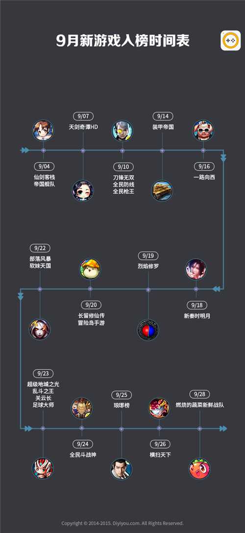三、9月份新游戏入榜时间、新游Top10以及新游类型分布