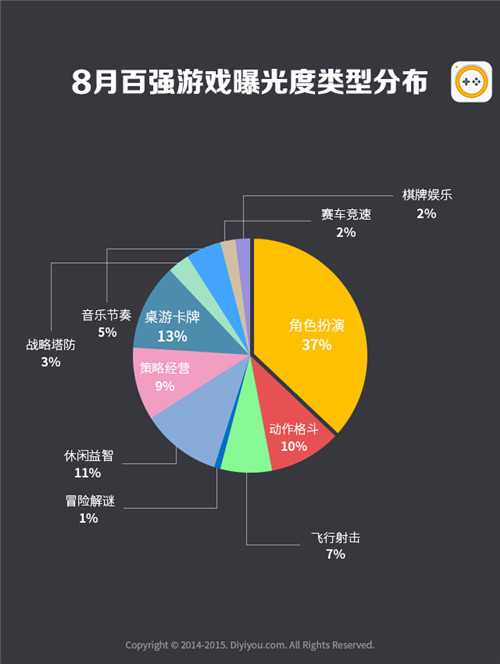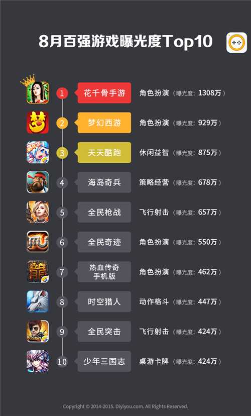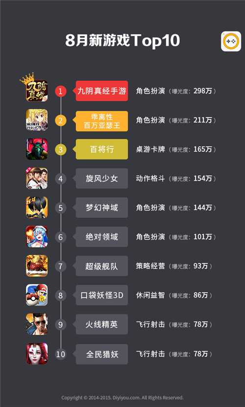 二、8月份百强手游曝光度Top 10与百强游戏类型分布