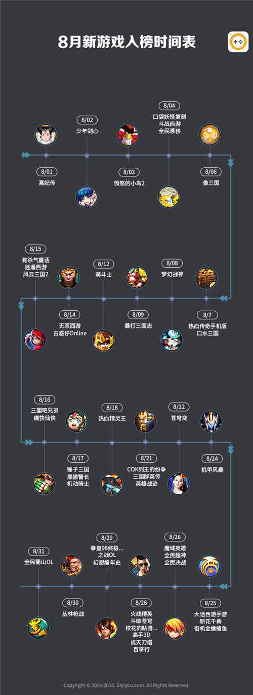 三、8月份新游戏入榜时间、新游Top10以及新游类型分布