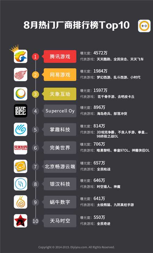 六、8月份热门手游厂商排行榜Top10