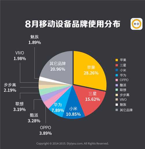 七、8月手游用户使用手机硬件设备市场分布
