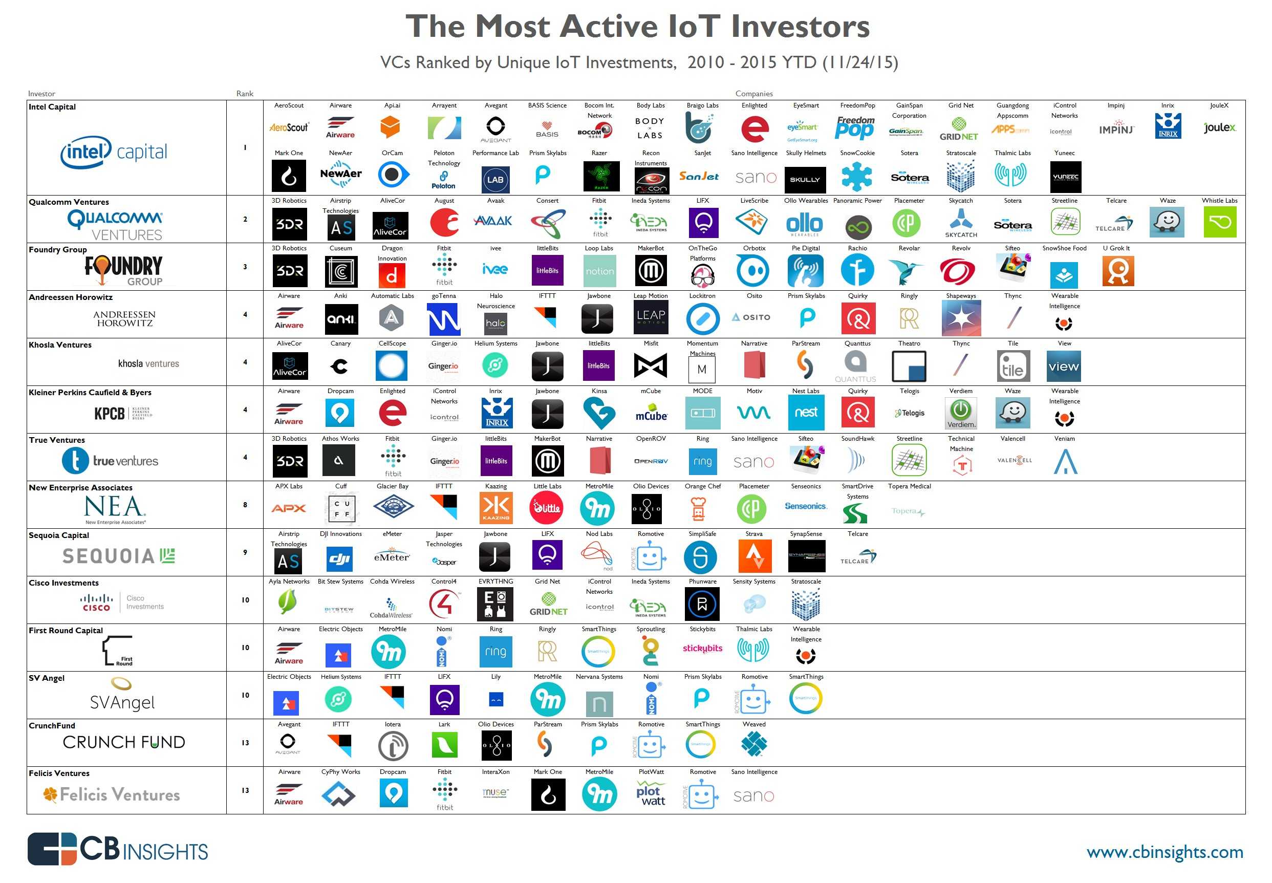 我们利用CB Insights的数据分析那些过去五年物联网行业活跃的投资人。