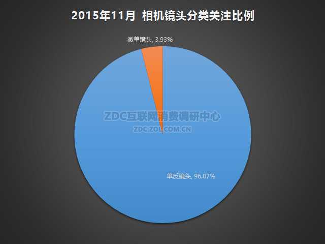ZDC统计数据显示,2015年11月中国的相机镜头市场上,单反镜头吸引了96.07%的关注比例,占有绝对的市场优势;微单镜头只有3.93%的关注度。
