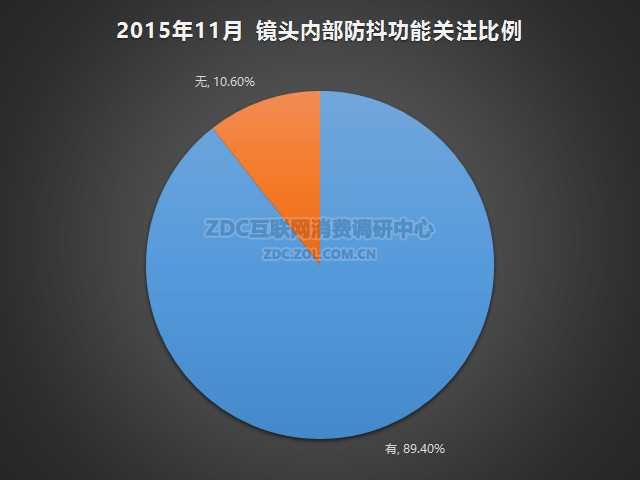 ZDC统计数据显示,2015年11月中国相机镜头市场上,有防抖功能的镜头关注比例为89.40%,没有防抖功能的镜头关注比例为10.60%。