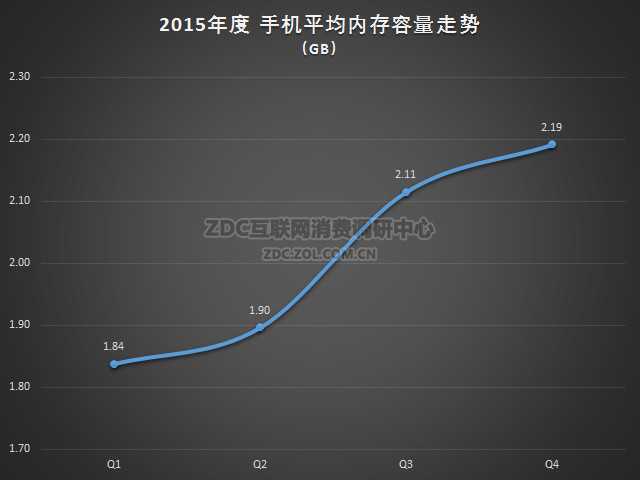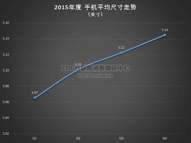 从手机屏幕变化来看,Q1中国手机市场上手机屏幕平均尺寸在5.07英寸,Q4则涨至5.14英寸,增长了0.07英寸,虽然增长速度有所放缓,但整体增长的趋势未变。