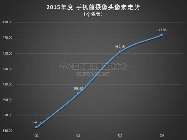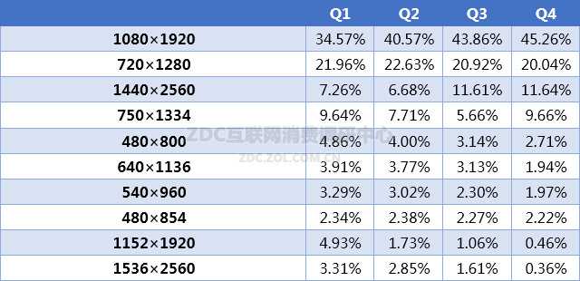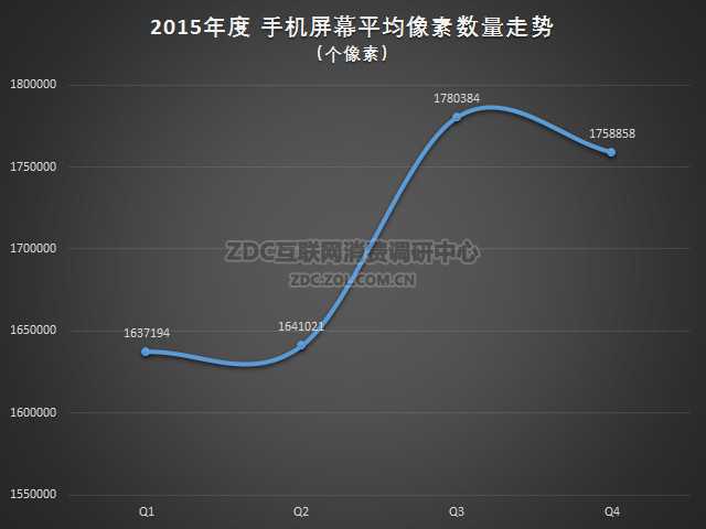 从手机屏幕平均像素数量来看,Q1手机屏平均像素为1637194个,但到了Q3,手机屏幕平均像素增长至1780384个,增长迅速。Q4虽有小幅滑落,但预计之后的两个季度会整体呈稳定走势。