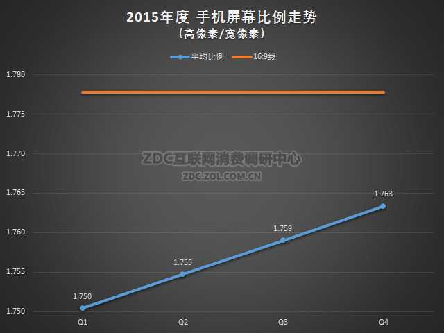从2015年度走势来看,16:9屏幕的手机关注度呈稳定走势,平均比例屏幕手机关注度则呈上涨走势。