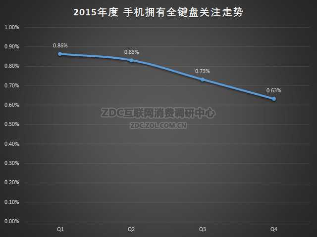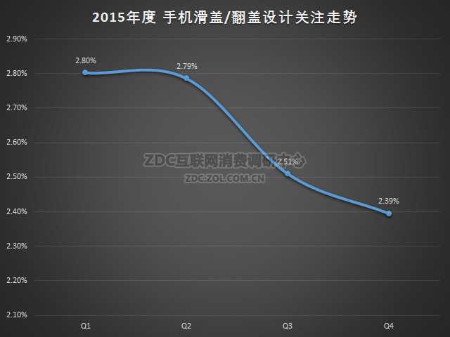 从2015年度走势来看,搭载标准16:9屏幕的手机关注比例呈直线上升走势,从Q1的82.97%到Q4的92.79%,增长了近10个百分点。15:9与16:10屏幕机型关注度则呈直线下滑态势,Q4其关注度降至5.62%。