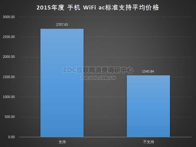 2015年度,支持WIFI ac标准的机型均价为2707.65元,远高于不支持WIFI ac标准的机型,二者均价相差近1200元。