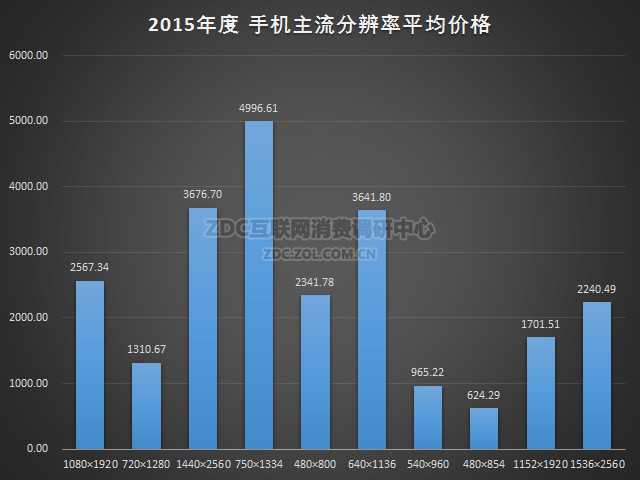 从分辨率来看,用户关注度最集中的1080*1920分辨率机型在2015年度的均价为2567.34元。750*1334分辨率机型的均价最高,这与苹果、三星均有此分辨率机型有关。小屏、低分辨率机型均价相对较低,480*854分辨率机型均价仅为624.29元。