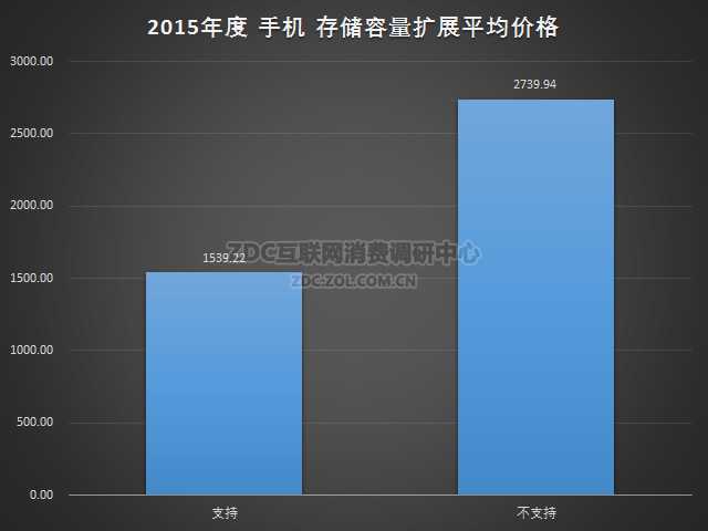 在苹果、三星等品牌的引领下,目前不支持存储容量扩展的手机数量越来越多,同时也成为未来的趋势。从均价来看,2015年度,不支持存储容量扩展的手机均价为2739.94元,而支持存储容量扩展的手机均价仅为1539.22元,低了1200元。