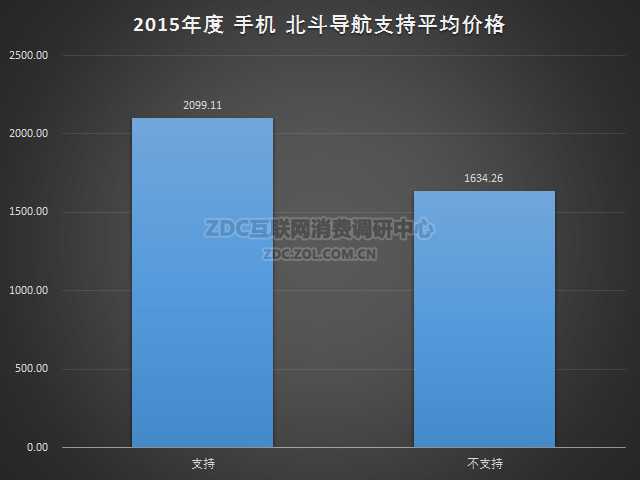 2015年度,支持北斗导航的手机均价为2099.11元,较不支持北斗导航的手机均价高近500元。北斗导航作为中国自主研发的导航技术,目前已经大范围的应用在手机领域。