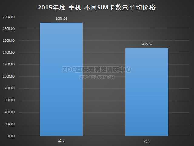 2015年度,单卡手机均价为1903.96元,接近2000元,较双卡手机均价高400余元,这与双卡手机多为国产中端机型有关。