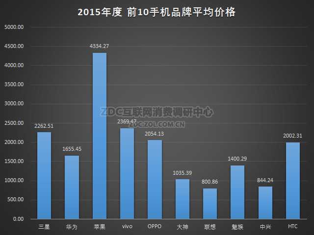 苹果均价高高在上,三星、vivo、OPPO、HTC位于第二梯队