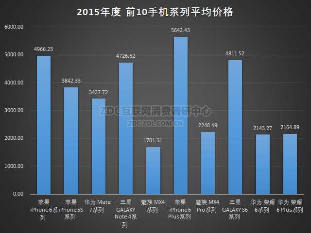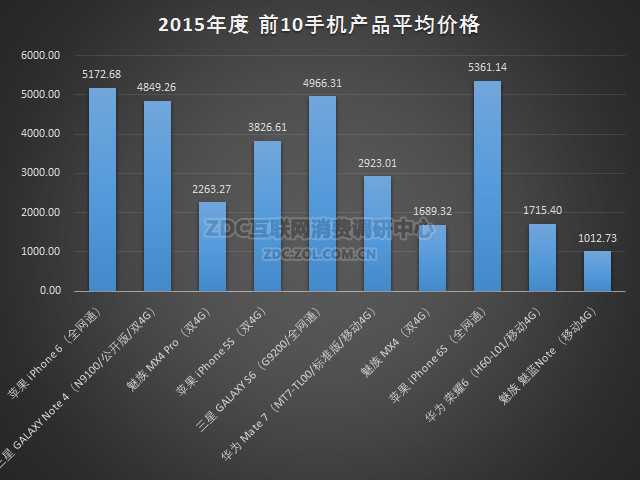 从前10产品均价来看,2015年度,苹果iPhone 6S(全网通)均价最高,达到5361.14元。苹果iPhone 6(全网通)均价也在5000元以上。三星的两款机型均价则集中在4800-5000元之间。魅族MX4 Pro(双4G)、华为Mate 7(MT7-TL00/标准版/移动4G)均价分布在2000-3000元之间。
