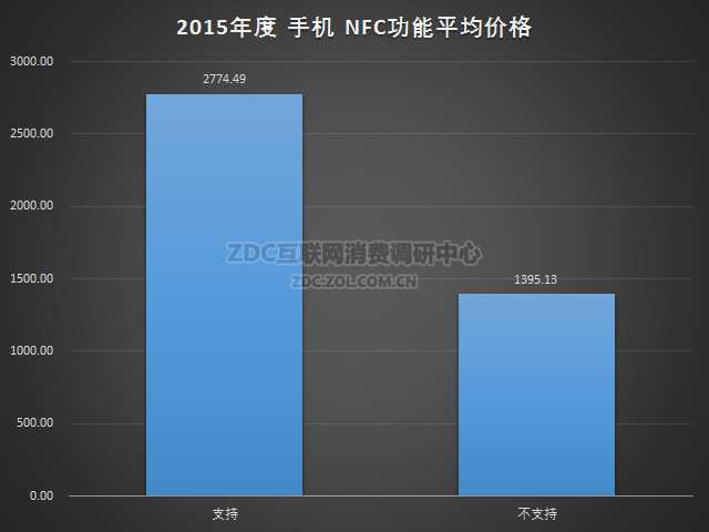 2015年度,中国手机市场上支持NFC技术的手机均价为2774.49元,较不支持NFC技术的手机均价高近1400元。