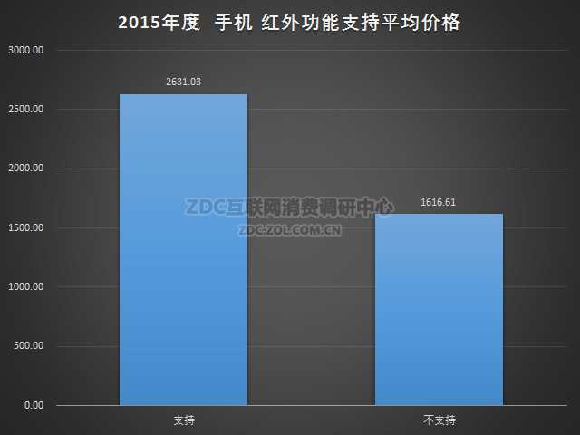 2015年度,支持红外功能的手机均价超过了2500元,而不支持红外功能的手机均价在1600元左右,前者要高900余元。