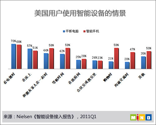 中国移动智能终端的普及速度,让人惊讶。这种普及打破了以往的用户媒介接触规律。尼尔森前段时间公布了一份最新的研究报告,报告显示,70%平板电脑用户和68%智能手机用户称其在看电视时使用平板电脑或智能手机。同时关注和使用多个媒介,已经成为移动网络时代的普遍社会现象。