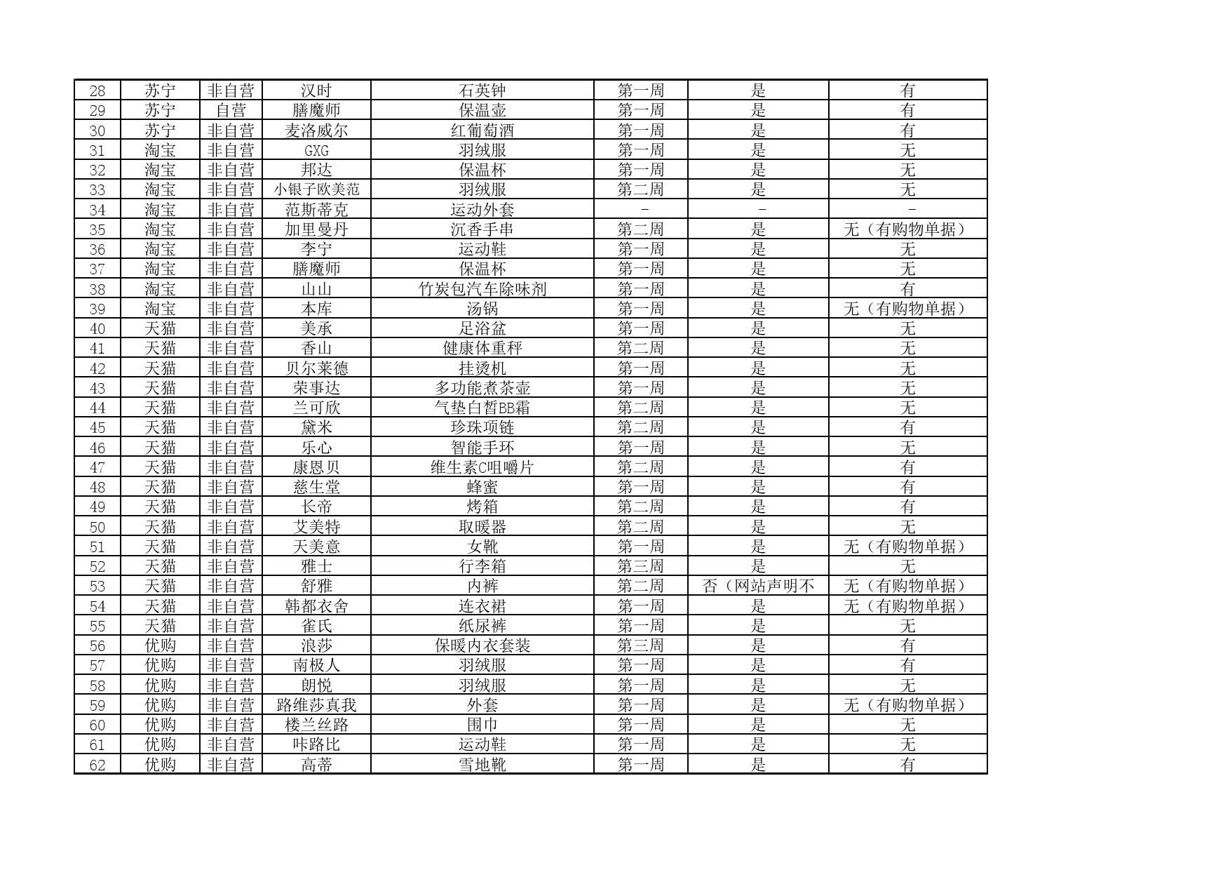 1.部分商品到货时间迟缓。网购商品到货时间最快为1天,即11月11日下单付款,12日送货上门;时间最慢为19天,商家解释因“快递爆仓,打回重发”延误了时间。根据商品到货时间统计,15款商品到货时间超过一周,消费者等待时间相对较长。对于1款未到货商品,工作人员主动与商家取得了联系,但被告知“包裹遗失”,工作人员直接申请了退货操作。