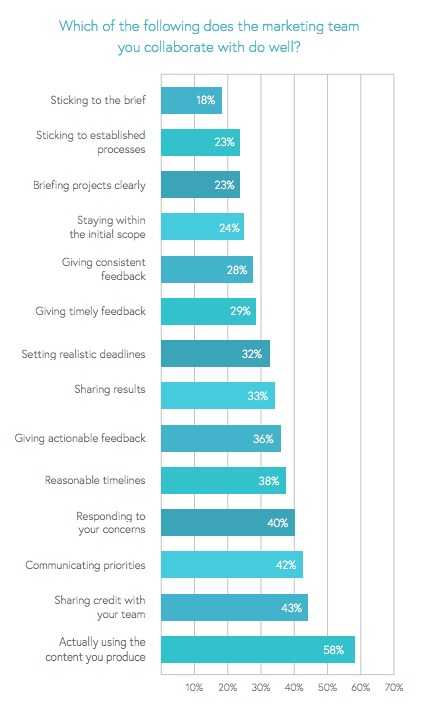 最新调查显示创作更好的营销内容需要部门间良好的沟通。