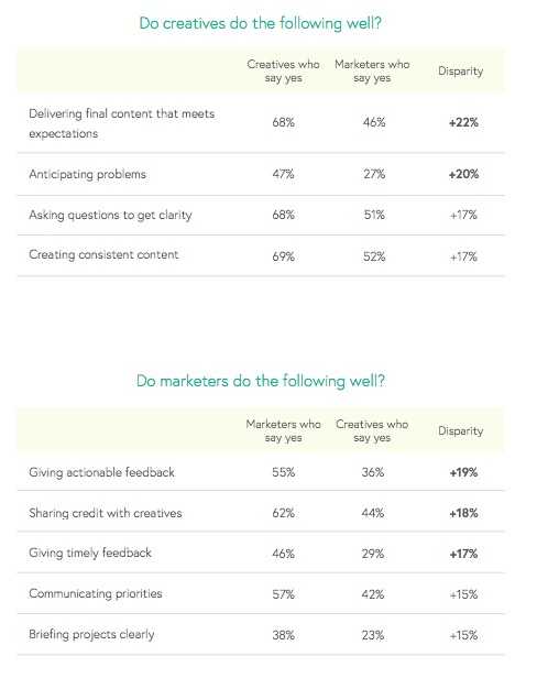 Visua.ly的新报告显示营销人员对创意的看法和营销部门对创意的看法。