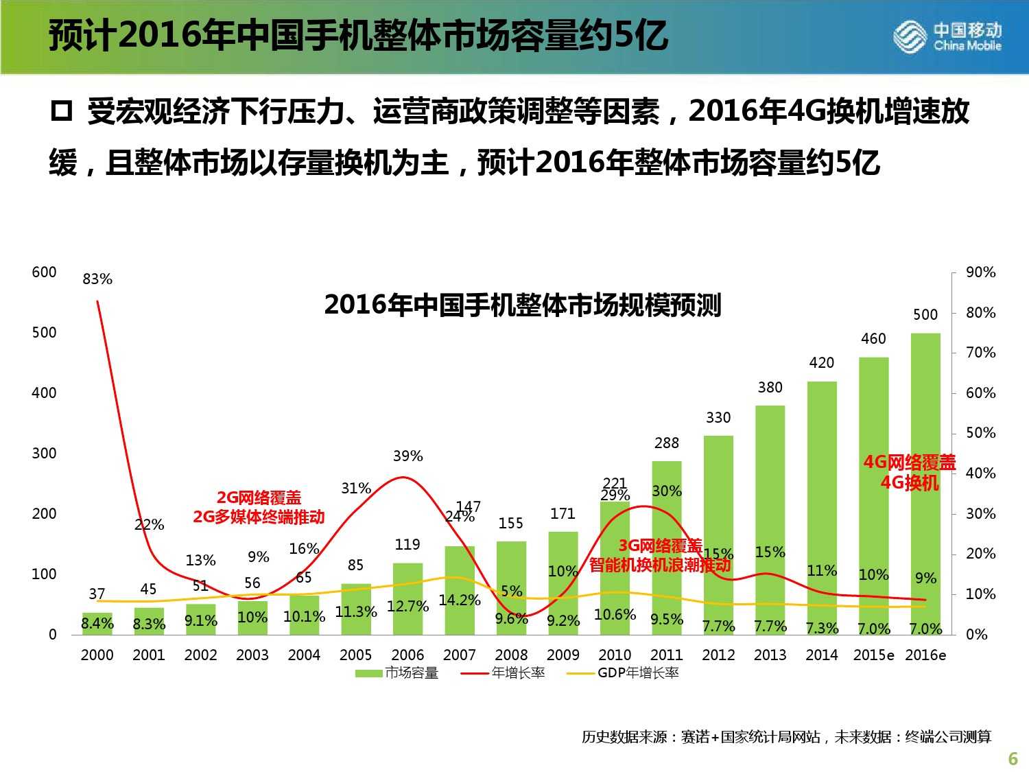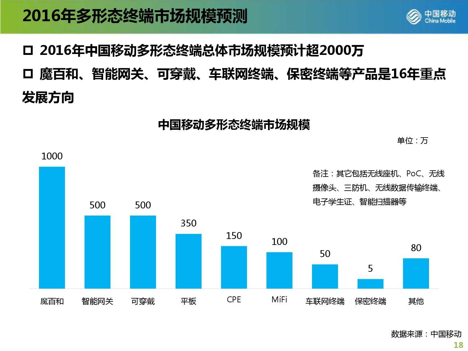 2016年中国移动终端产品规划 更多阅读:2015年中国移动终端质量报告12321受理中心:2023年Q2垃圾短信投诉中国移动占67.6%C114通信网:截至2023年3月底四大运营商全网5G套餐用户数已经突破12亿中国移动财报:2023年Q1中国移动营收2507亿 同比增长10.3%2021年上半年中国移动营运收入达到人民币4436亿元 同比增长13.8%工信部:5G商用五年间接带动总产出约14万亿元中国移动财报:2023年中国移动全年营收达到了10093亿元 同比增长7.7%三大运营商:全网5G套餐用户已超13.22亿 用户渗透率已达76.5%中国移动财报:2022年1-6月中国移动营运收入为人民币4,969亿元 同比增长12.0%中国移动:2022年6月中国移动5G套餐客户数5.109亿户2022年Q1三大运营商合计净利润348.54亿元 日赚3.8亿中国移动七名高管税前年薪过百万 平均薪资居运营商首列2021年三大运营商共营收超1.6万亿元 净利润约1564.6亿元测速网:2021年全国网络速度和质量报告国内三大运营商2021年日赚超4亿 联通收入增速创八年新高