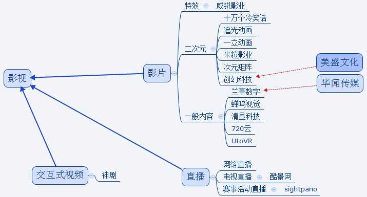 大公司,除暴风等,高举高打,从整个产业链布局,意图打造完整的产业链,其它影视和游戏开发巨头目前基本还没有浮出水面,但大趋势下,或许他们已经有所动作。
