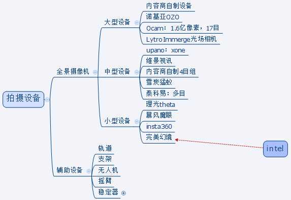 全景拍摄设备是今年一个新的发力点。拍摄全景主要方式是多摄像头拍摄和拼接,在 VR 视频出现前,一些拍摄全景的团队已经有不少相关技术积累。目前专业的全景拍摄设备还不完全成熟,不少公司也自制了相应设备,也出现一些创业公司专注于全景拍摄设备。遗憾的是,还没见到传统的拍摄设备巨头:佳能,尼康,索尼推出相应设备。