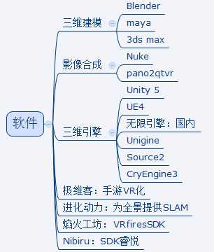 无论 VR 影视还是 VR 游戏内容制造,都还需要相应的软件,也已经有相对标准的工作流程。软件工具方面,比较复杂,难以直接分类,具体有: