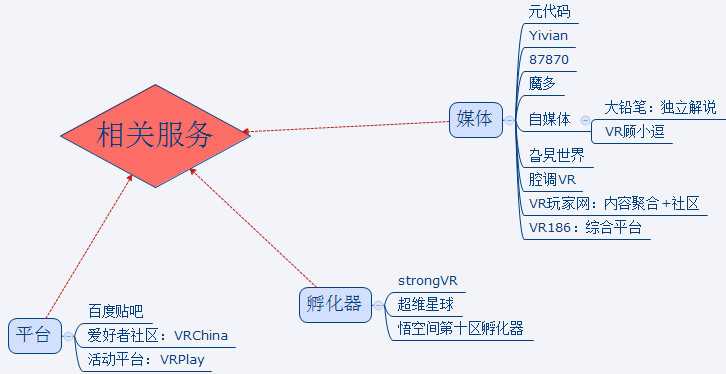 一个行业的发展壮大,必然会带来相当多的行业服务机会。目前 VR 领域比较明显的大概有媒体,平台和孵化器几种。
