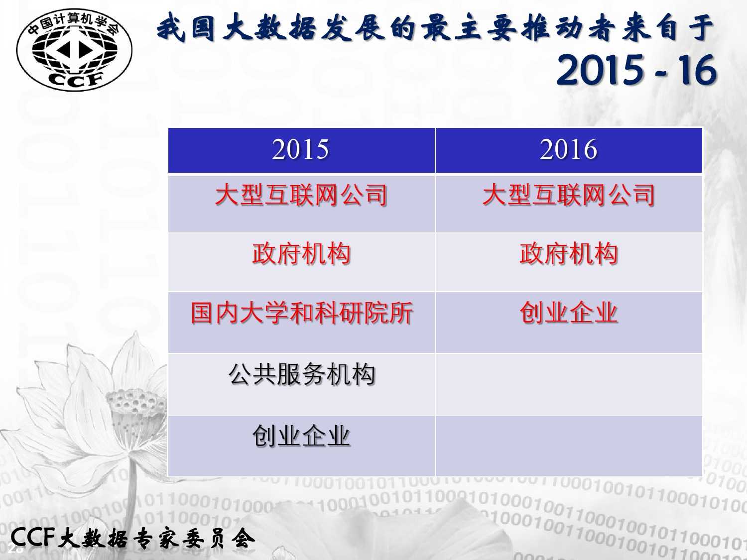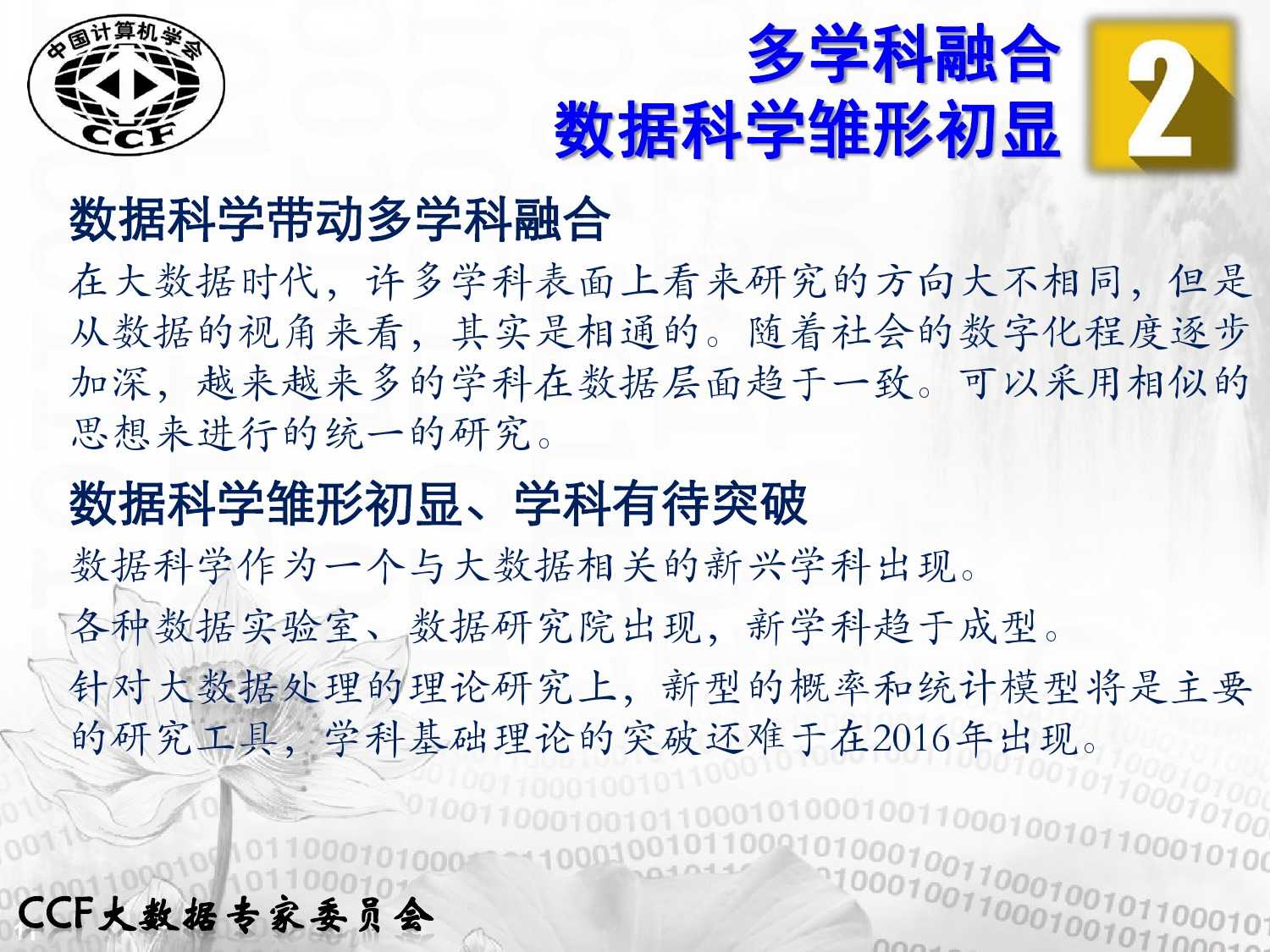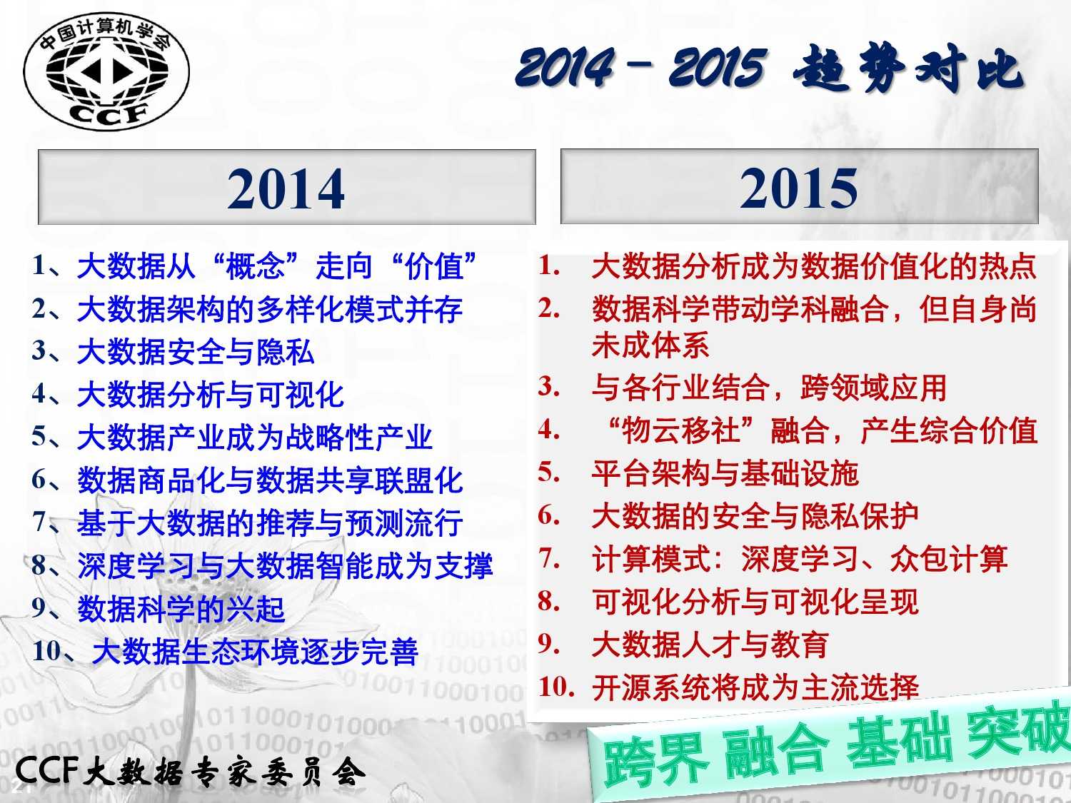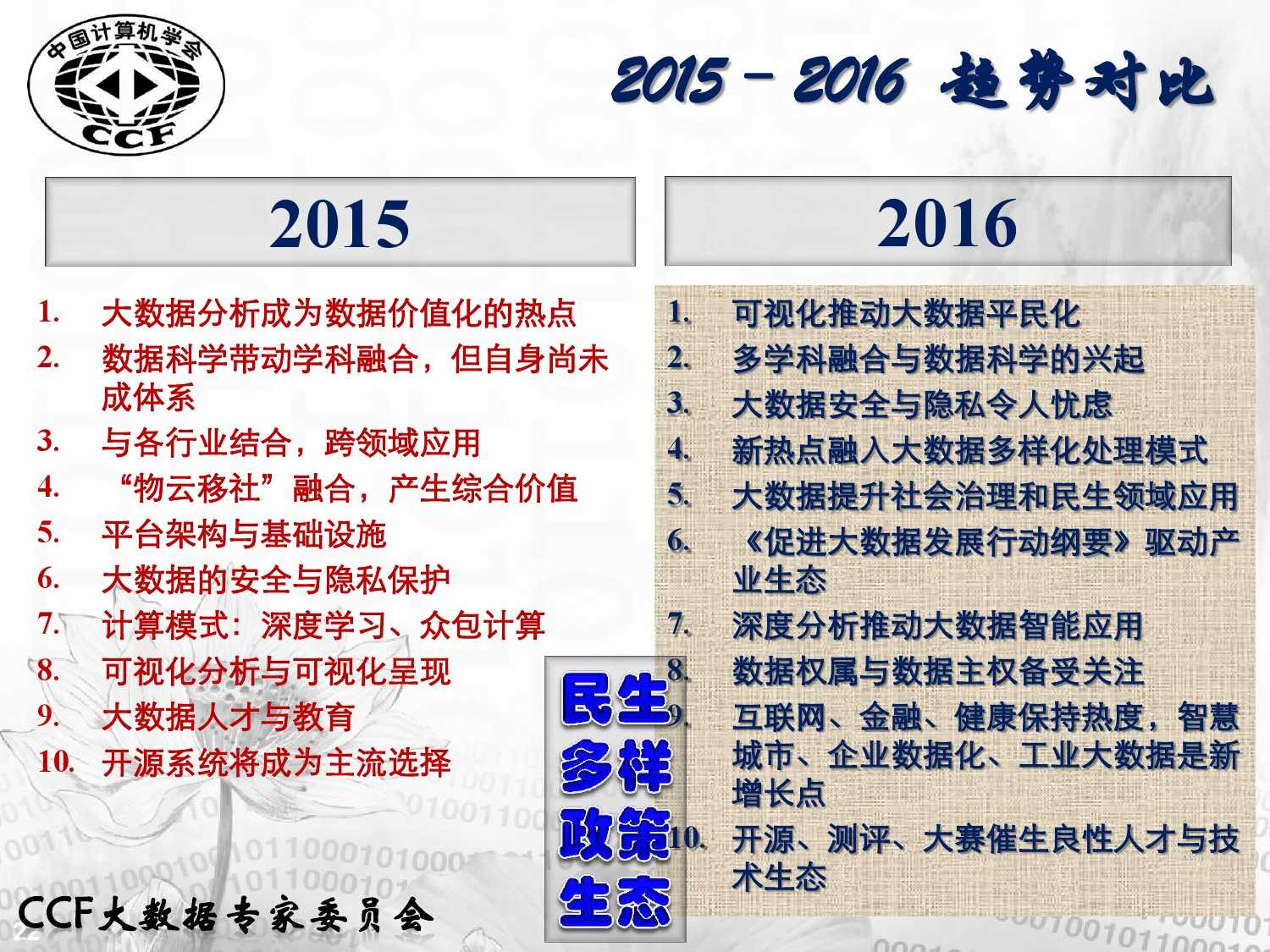 2016 年大数据技术发展趋势解读 更多阅读:大数据技术人员工具包最全集合中国科学院高能物理研究所陈刚:大数据技术在高能物理中的应用计算机工程师利用大数据技术发现遗传病病因Smart Data Platform – 大数据技术的未来大数据技术 未来发展前景及趋势分析大数据掀人类文明革命 探索更多未知盘点九大热门开源大数据技术大数据预测2016欧洲杯 德国夺冠2016年中国大数据行业市场运行现状分析2016年互联网行业十大预测:云计算、大数据、人工智能2016年大数据行业产业图谱–信息图中国旅游研究院:2016中国出境旅游大数据2016年大数据领域成果及趋势2016年留学大数据解读猎聘:2019年中国AI人工智能&大数据人才就业趋势