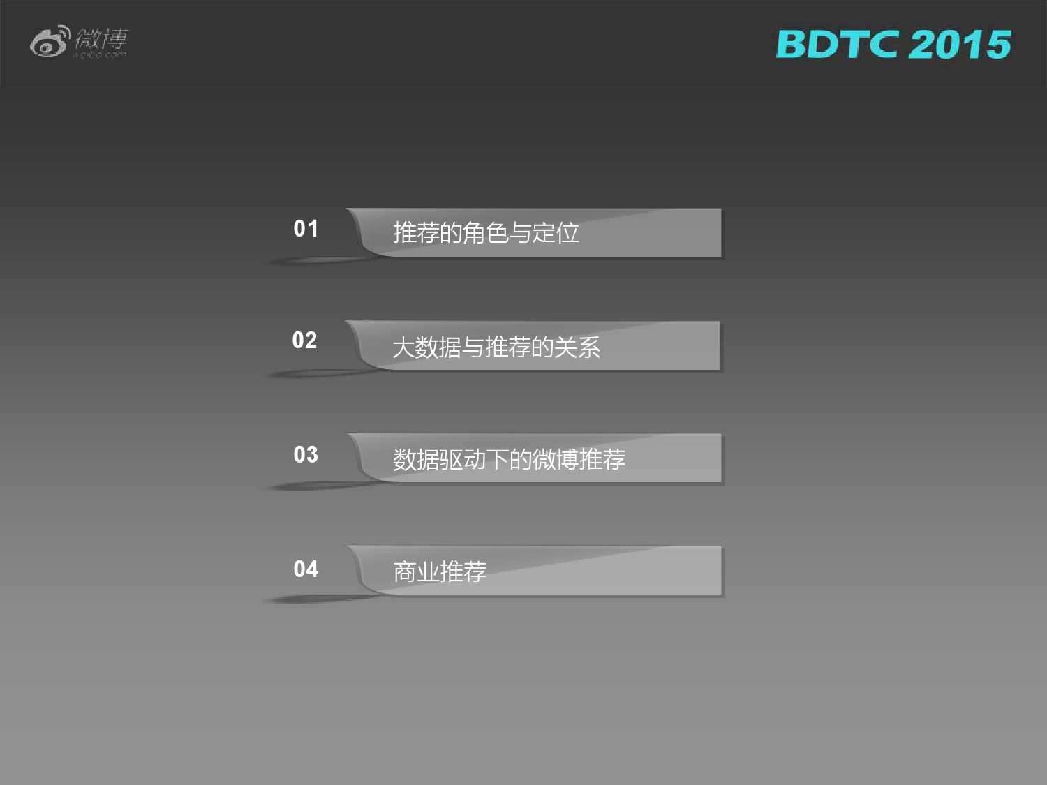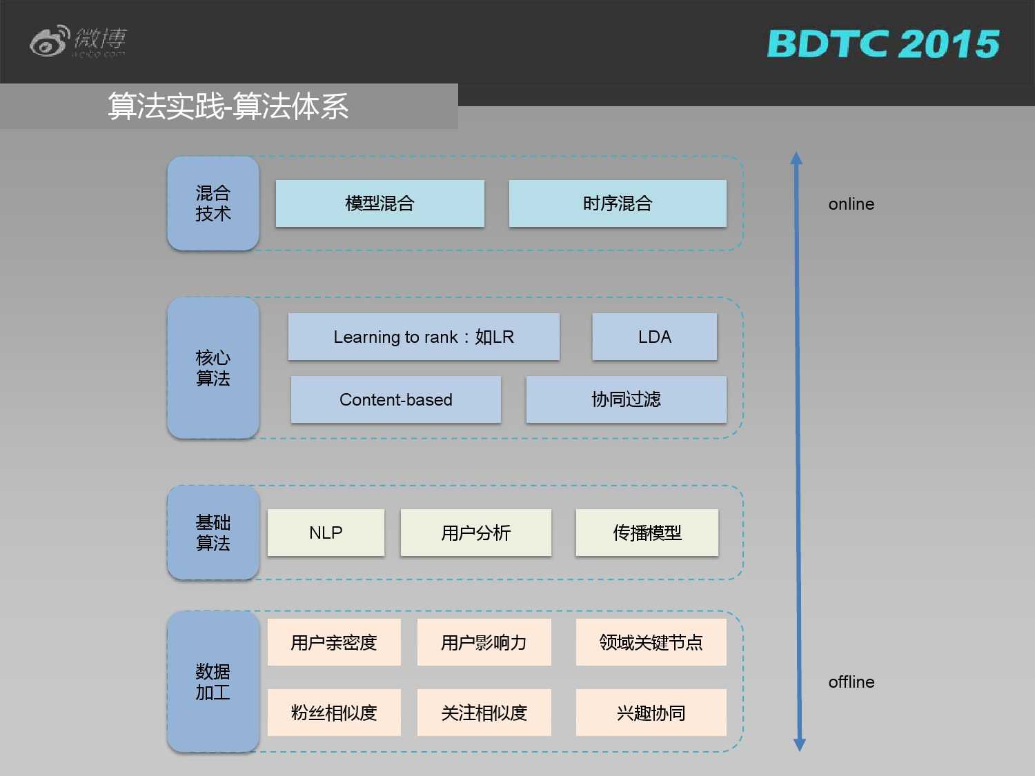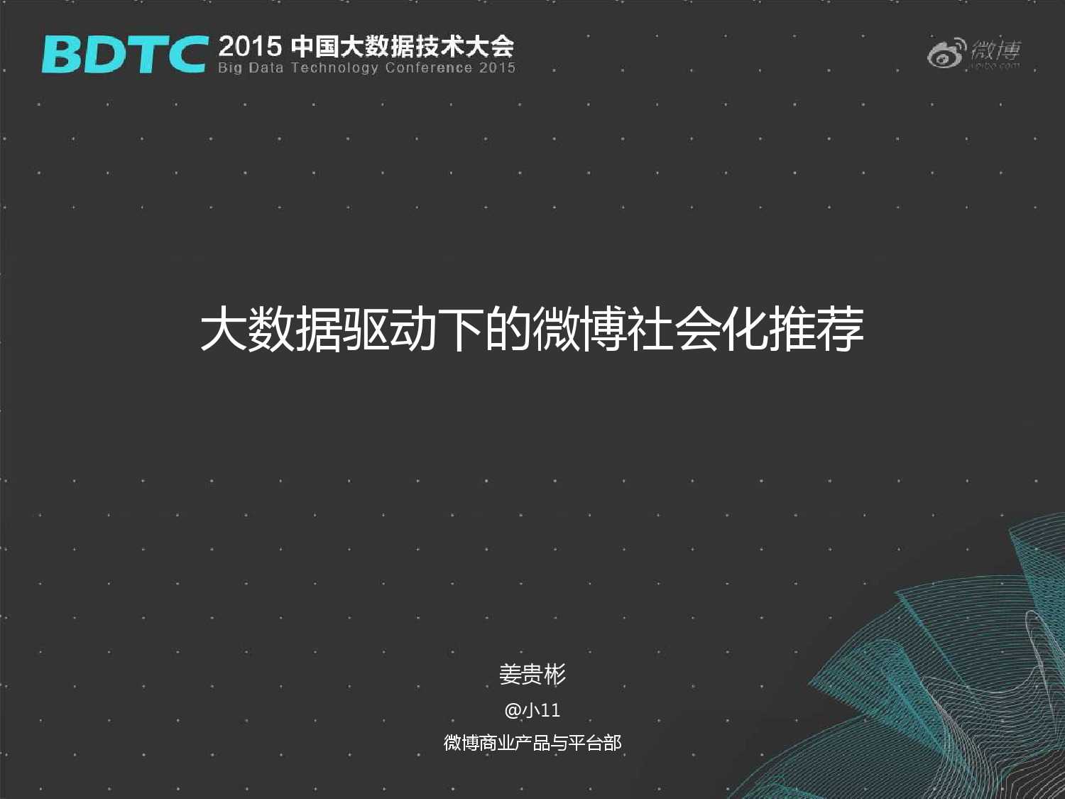 大数据驱动下的微博社会化推荐 更多阅读:日本AV女优的微博大数据–信息图Gartner:2021年十大数据和分析趋势中科院:2020年地球大数据支撑可持续发展目标报告大数据蓝皮书:中国大数据发展报告58同城:2020年3月餐饮行业就业大数据未来消费者系列研究:大数据驱动的消费者洞察如何成为一名大数据工程师?七麦数据:2018年10月App Store大数据大数据揭秘双十一:广东人最爱买、天秤座是购物狂2018年海外大数据和人工智能产业全景分析与趋势预测如何用大数据解读流浪汉的生活大数据+咖啡因| 可口可乐的转型升级探索IDC:2025年全球大数据IT投资4134亿美元,五年CAGR16.4%工信部:2025年上半年集成电路设计收入2022亿元,同比增长18.8%工信部:2023年前三季度电信业务收入累计完成12813亿元 同比增长6.8%