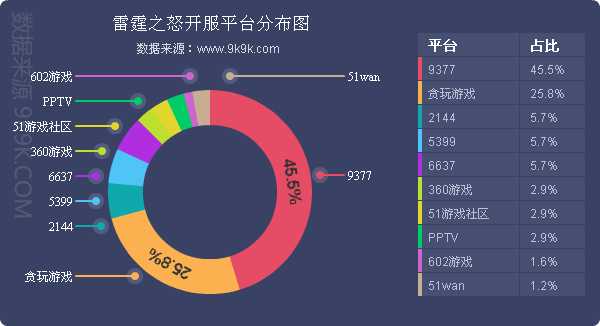 点评:《雷霆之怒》本周开服有所增加,9377开服占比为45.5%,较上周增加9.7%,是其开服总数增加的主要原因。新增占比平台顺网游戏。