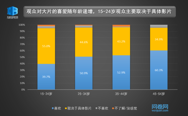 男性观众更爱大片,年龄愈大愈信赖大片